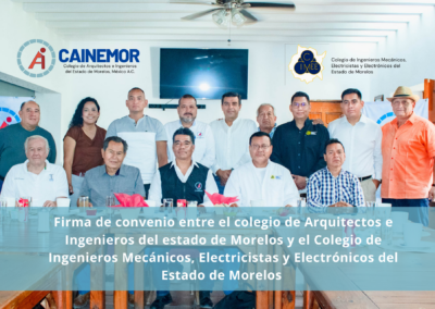 Firma de convenio entre el colegio de Arquitectos e Ingenieros del estado de Morelos y el Colegio de Ingenieros Mecánicos, Electricistas y Electrónicos del Estado de Morelos
